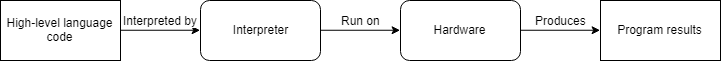 어셈블리 프로그램과 마찬가지로 고급 언어로 작성된 프로그램은 실행되기 전에 컴퓨터가 이해할 수 있는 형식으로 번역되어야 합니다. 컴파일과 해석이라는 두 가지 기본 방법이 있습니다.